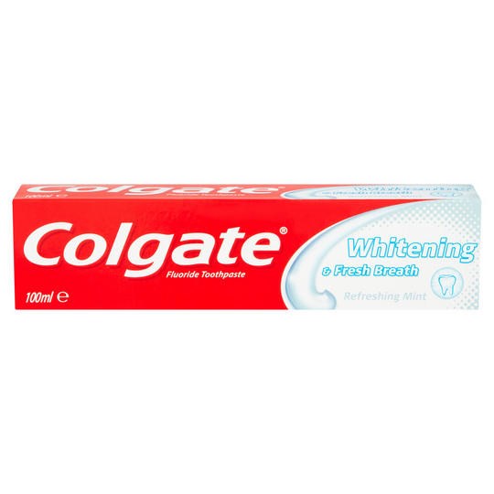 Colgate Whitening & Fresh Breath Tandpasta - 100 ml Colgate Whitening Tandpasta gaat een slechte adem tegen, maakt tanden witter en gaat cariës tegen.