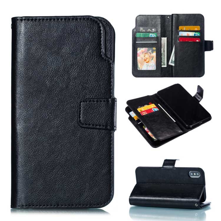 Crazy Horse Leren Case voor iPhone XS Max met Kaarthouder - Zwart
