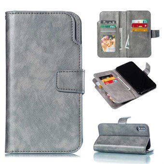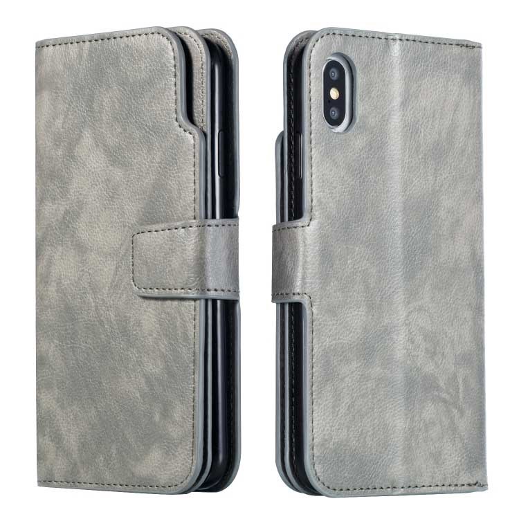Crazy Horse Leren Case voor iPhone XS Max met Kaarthouder - Grijs