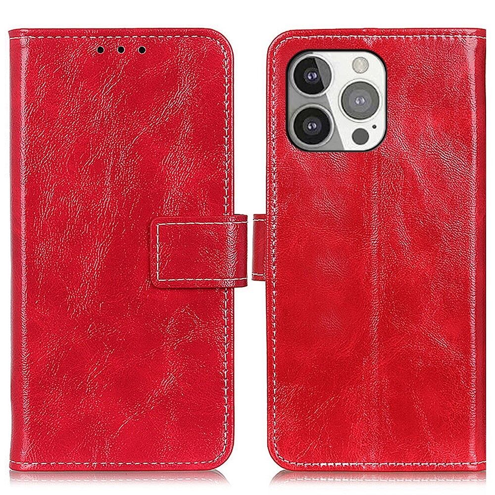 Crazy Horse Textuur Vintage Stijl Portemonnee PU Lederen Telefoon Cover Stand Case voor iPhone 13 Pro - Rood