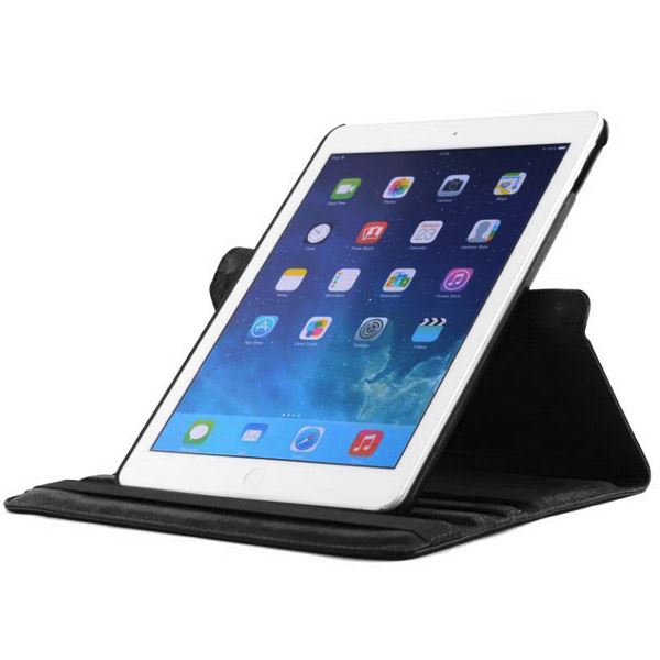 360º roterende hoes voor iPad Air 2 Plaats je Ipad Air 2 in deze 360º roterende hoes met hoes en leuke details. De case is gemaakt van duurzaam imitatieleer met een TPU plastic hoes. Je iPad klik je eenvoudig op de Cover en je iPad is optimaal beschermd tegen krassen, stoten en stoten. De case heeft aan de achterkant een uitsparing voor de camera en aan de zijkanten voor knoppen en stroomstekkers. Het 360º draaibare ontwerp geeft je een standaard voor je iPad om handsfree films te kijken of je e-book te lezen.