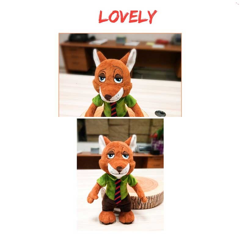De vos Nick Wilde, de sluwe en sluwe vos uit de film Zootropolis. Nu kun je met de vos Nick Wilde op avontuur gaan in zijn fascinerende wereld. Hij draagt mooie kleren en mocht er mee geknoeid worden, dan kan het met de hand gewassen worden. De teddybeer kan gebruikt worden door kinderen vanaf 3 jaar, om mee te spelen of om de kamer mee te versieren. Het kan ook een hit zijn voor de verzamelaar, die dit exemplaar op het schap in zijn verzameling mist.