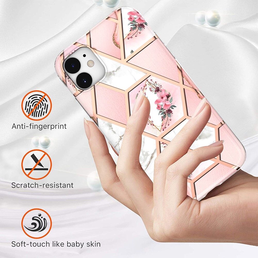 Deco Marble Flower Motif TPU telefoonhoesje voor iPhone 11 - Pink Marble Flower