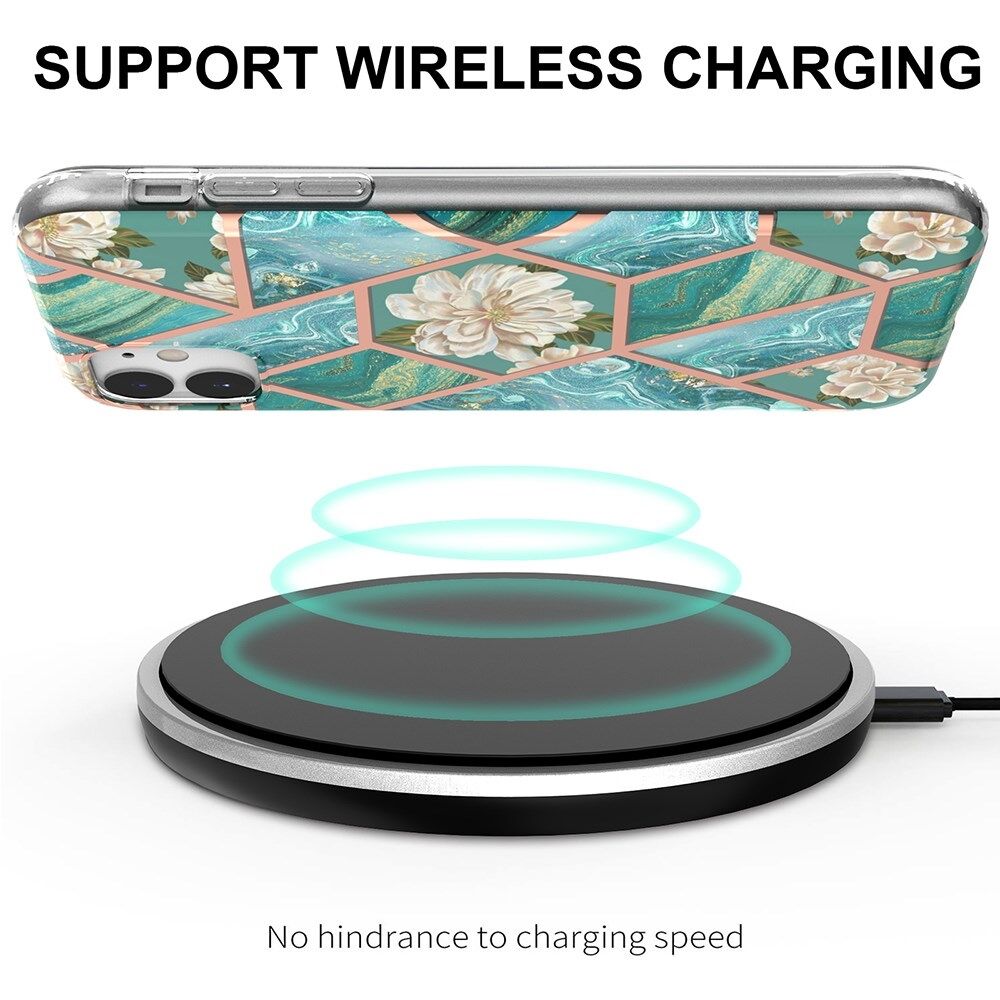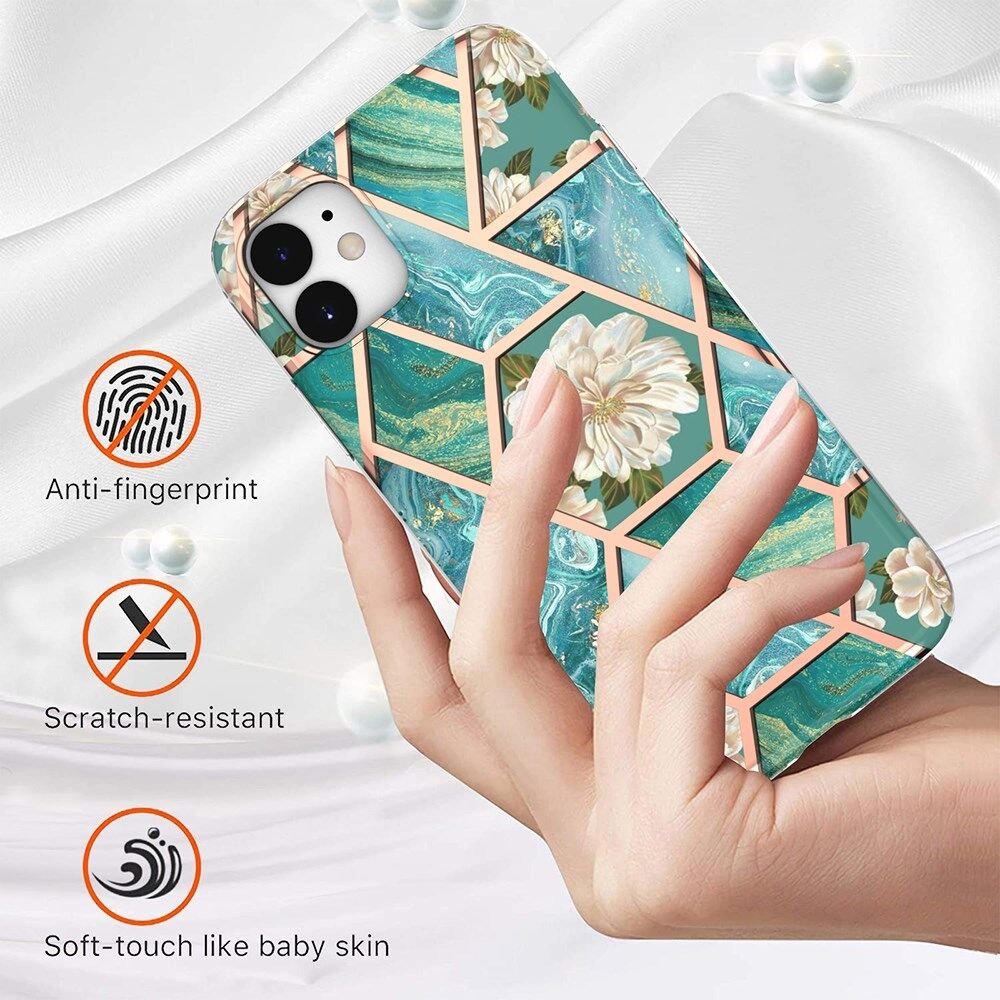 Deco Marble Flower Motif TPU telefoonhoesje voor iPhone 11 - Green Marble Flower