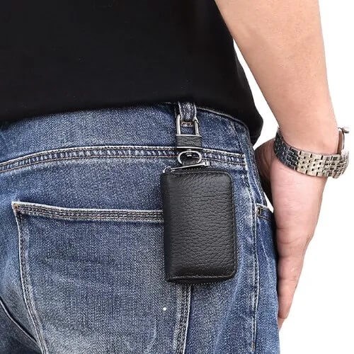 Met een praktische ritssluiting kun je de sleuteltas gemakkelijk openen en sluiten, zodat je snel de sleutels kunt pakken die je nodig hebt. Door het compacte formaat makkelijk mee te nemen in je broekzak, tas of aan je riem te bevestigen met de bijgeleverde ketting.