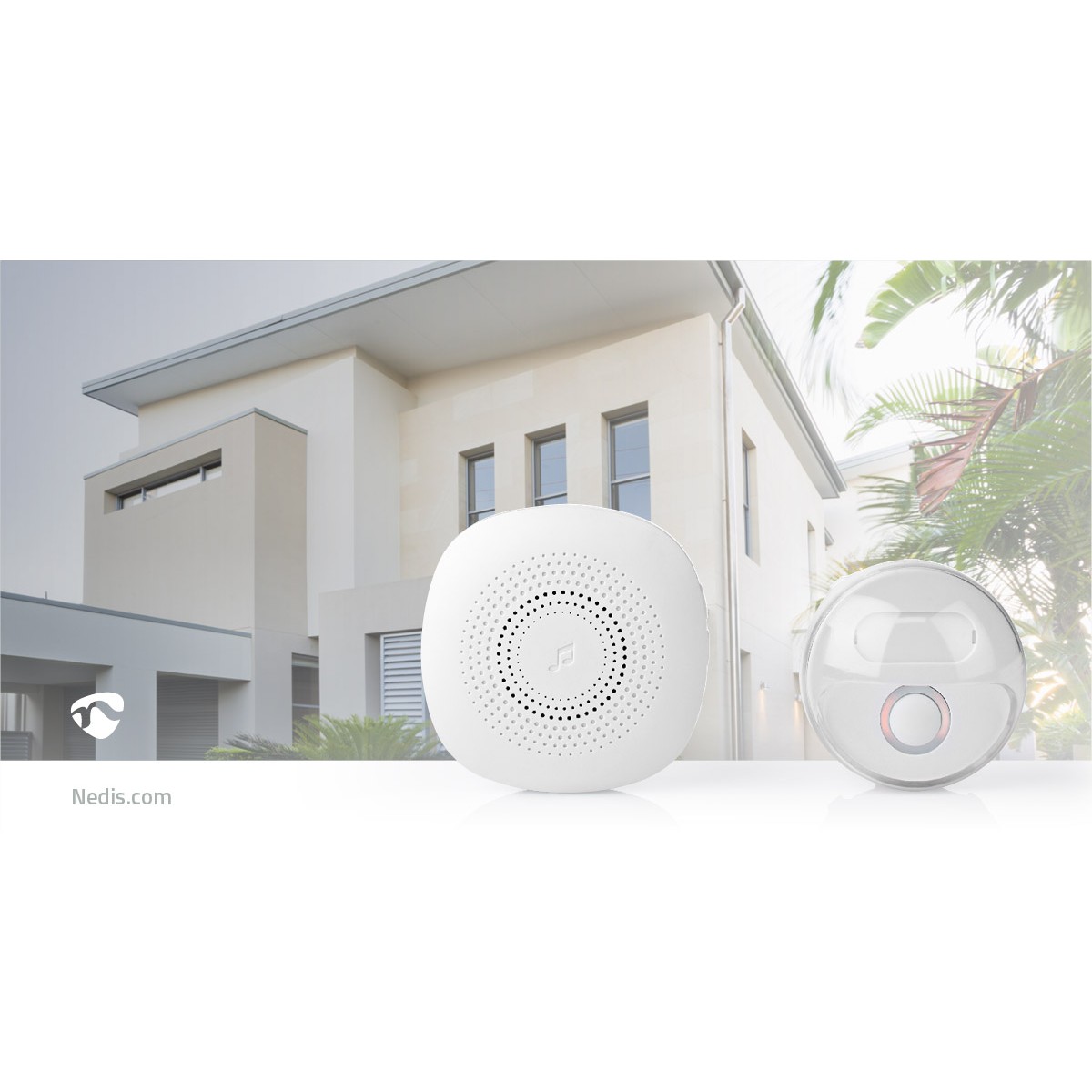 Draadloze deurbelset | Stroomvoorziening | 220 - 240 V wisselstroom 50 Hz | 1x CR2032 | Volume: 80 dB | Signaalbereik: 300 m | IP44 | Instelbaar volume | 36 Melodieën | 1 ontvanger | Wit