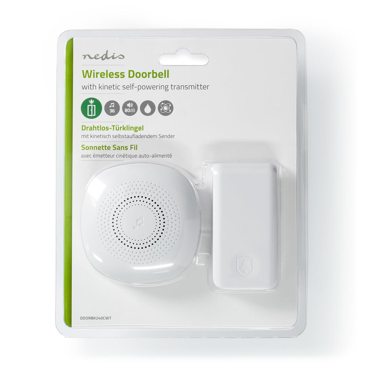 Deze draadloze deurbel is zeer eenvoudig te installeren. Sluit de ontvanger aan en monteer de zender bij de deur met de meegeleverde materialen: Je deurbel is klaar voor gebruik! Zelfaangedreven zender zet kinetische energie om in een elektrisch signaal en is volledig functioneel zonder het gebruik van batterijen.