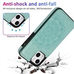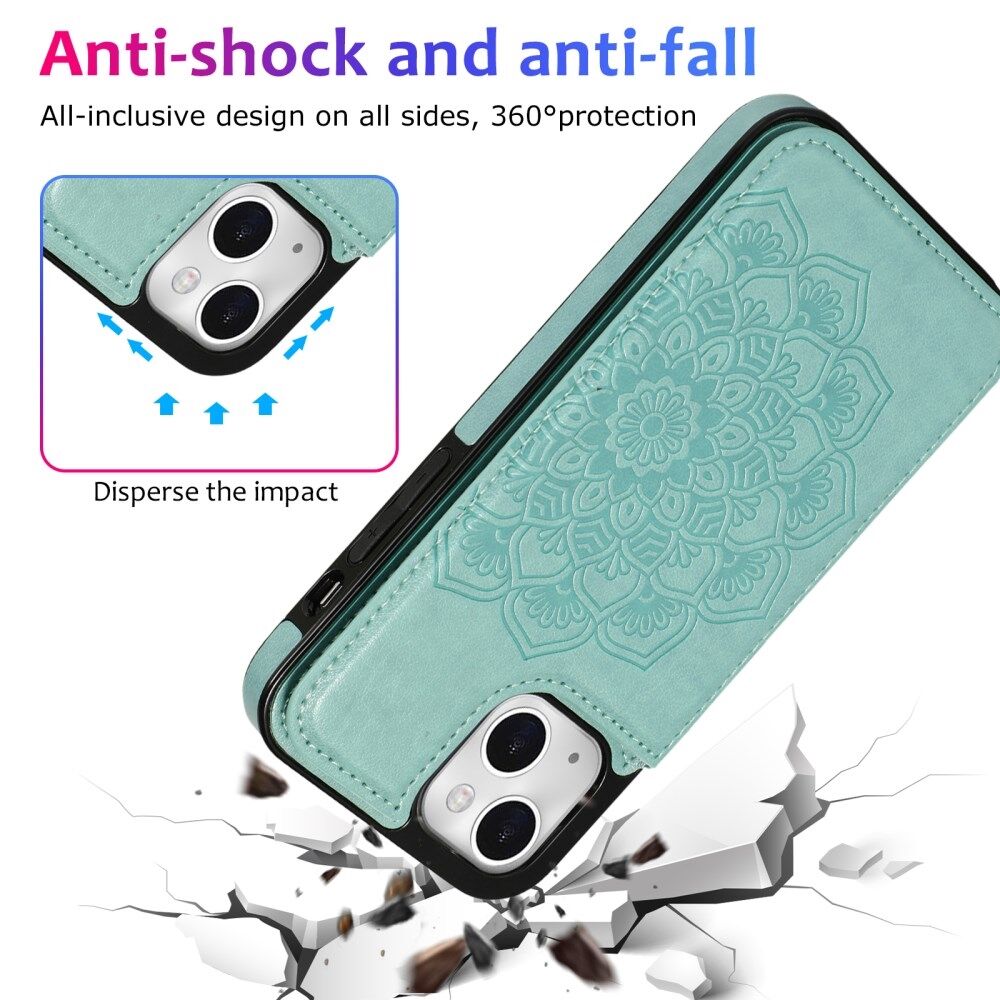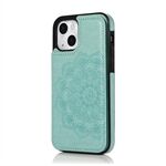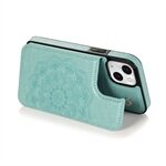 Dual Magnetic Buttons PU Leather + TPU Phone Case Bedrukt Mandala Flower Kickstand Card Holder Krasbestendig Phone Cover voor iPhone 13 6.1 inch - Groen