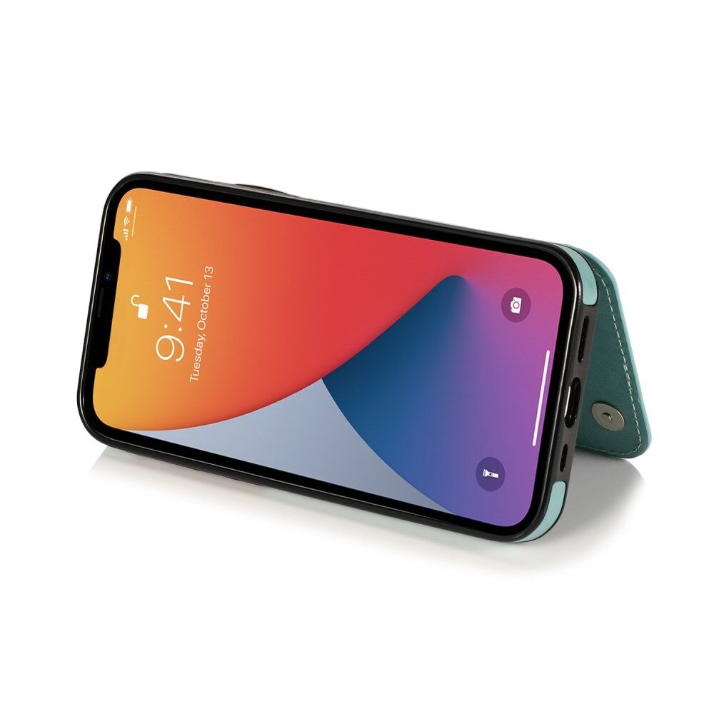 Dubbele magnetische knoppen PU-leer + TPU-telefoonhoes bedrukte mandala bloemstandaard kaarthouder krasbestendige telefoonhoes voor iPhone 13