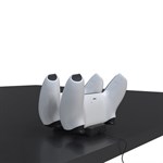 Onze Dual Charger Stand is ontworpen om je PS5 DualSense-controllers op te laden. Met dit product voorkom je rommel en zorg je voor eenvoudig opladen van je controllers. Je kunt de lader rechtstreeks aansluiten op je console via USB of op een stopcontact via een adapter.
