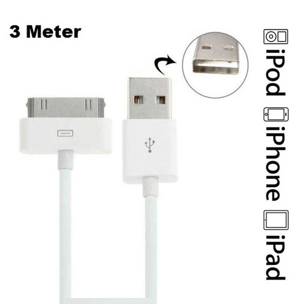 Dubbelzijdige iPod / iPhone / iPad - USB datakabel 3 meter in hoge kwaliteit