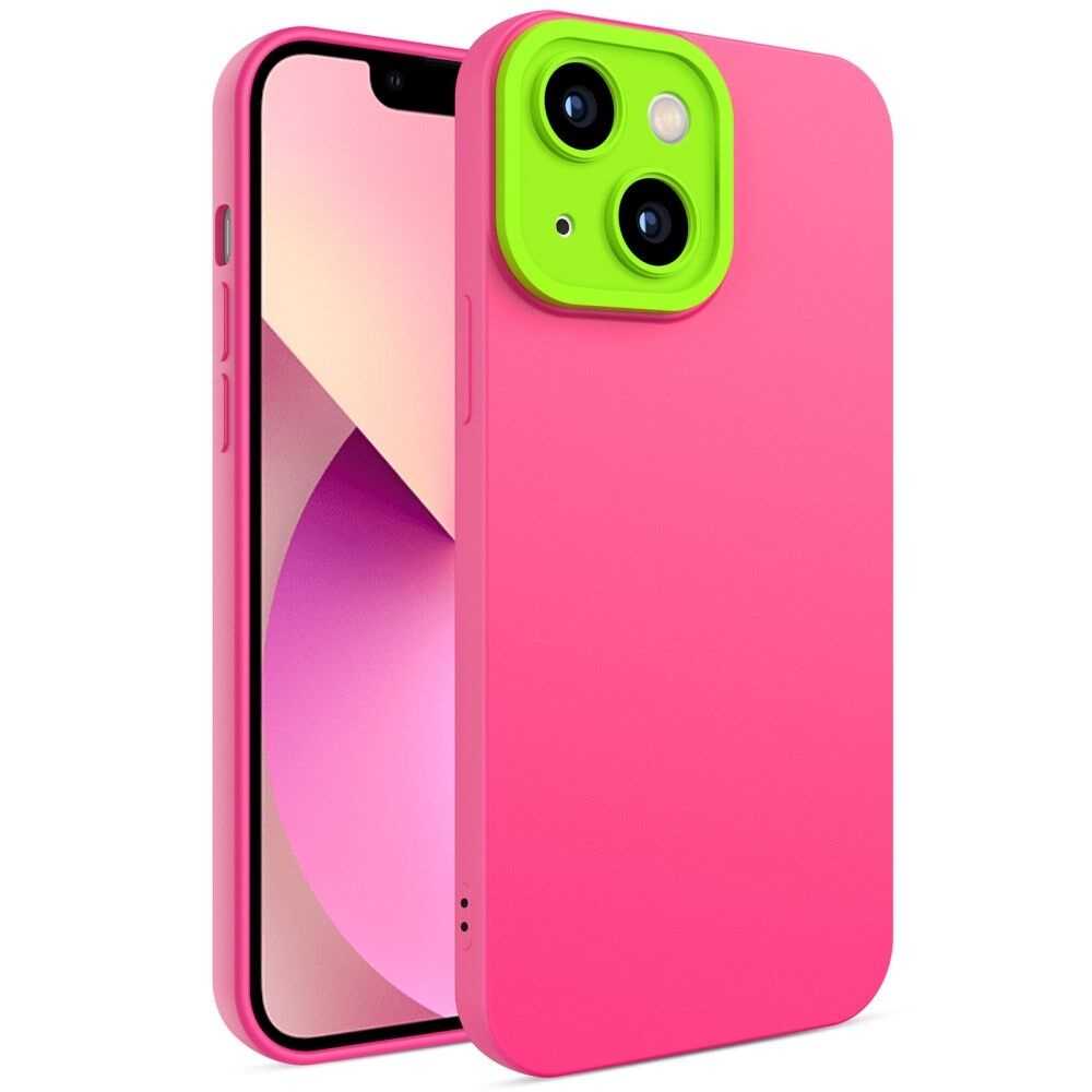 Eagle Eye Lens-serie Cameralensbescherming Rubberen TPU + PC hybride telefoonhoesje voor iPhone 13 - Rose + Lime