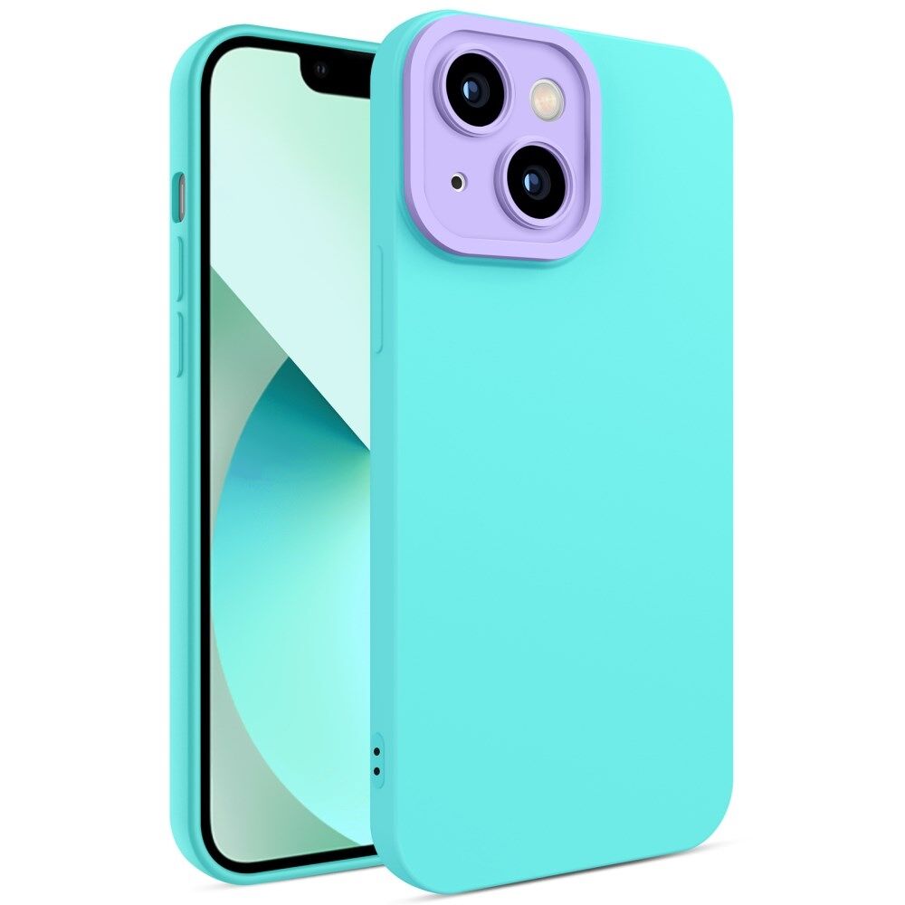 Eagle Eye Lens-serie Cameralensbescherming Rubberen TPU + PC hybride telefoonhoesje voor iPhone 13 6.1 inch - lichtgroen + paars