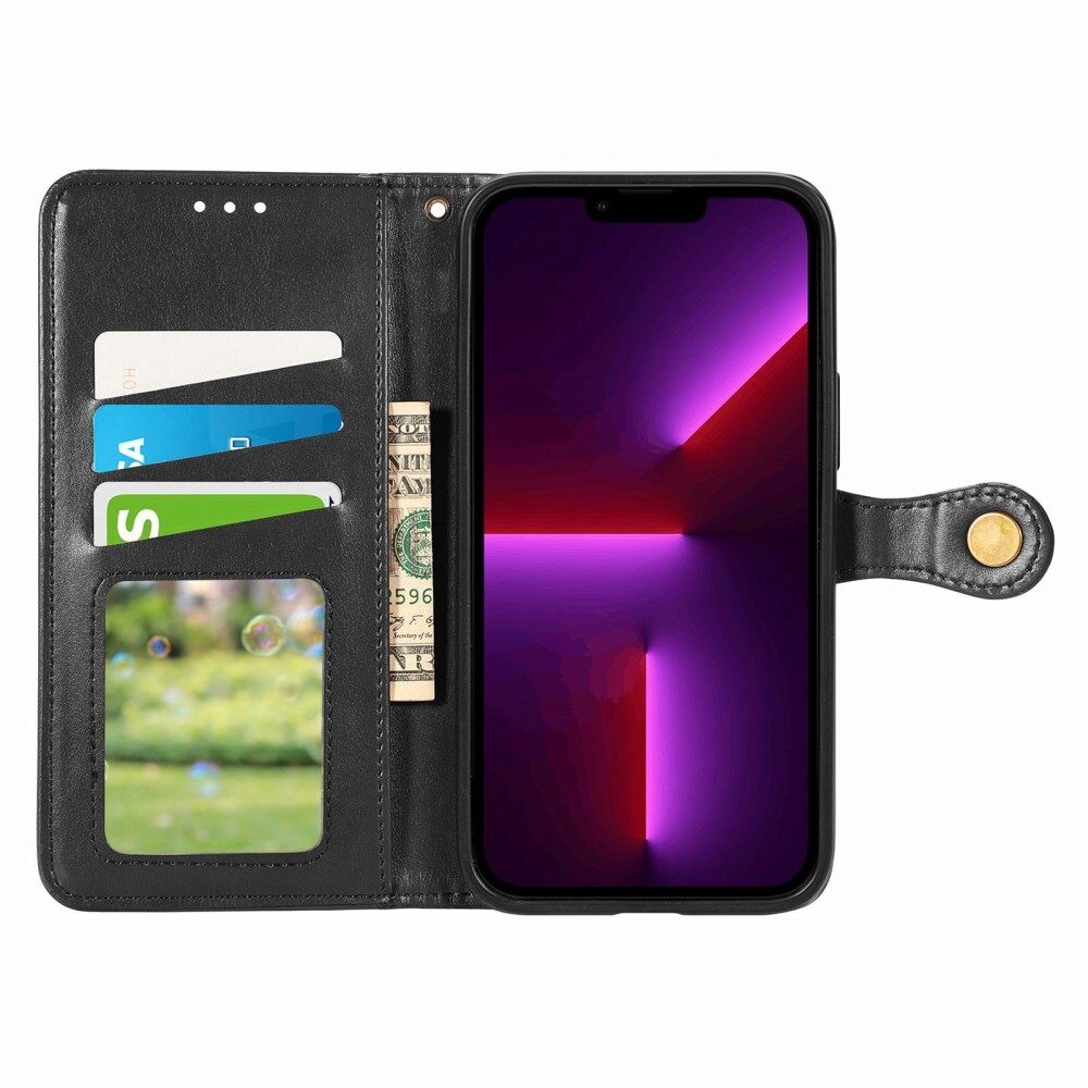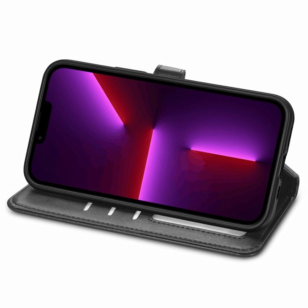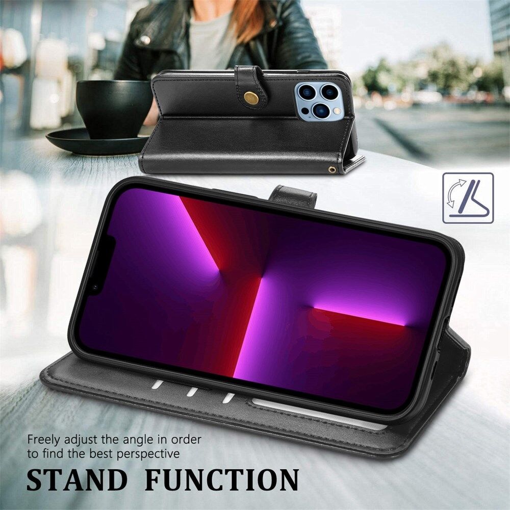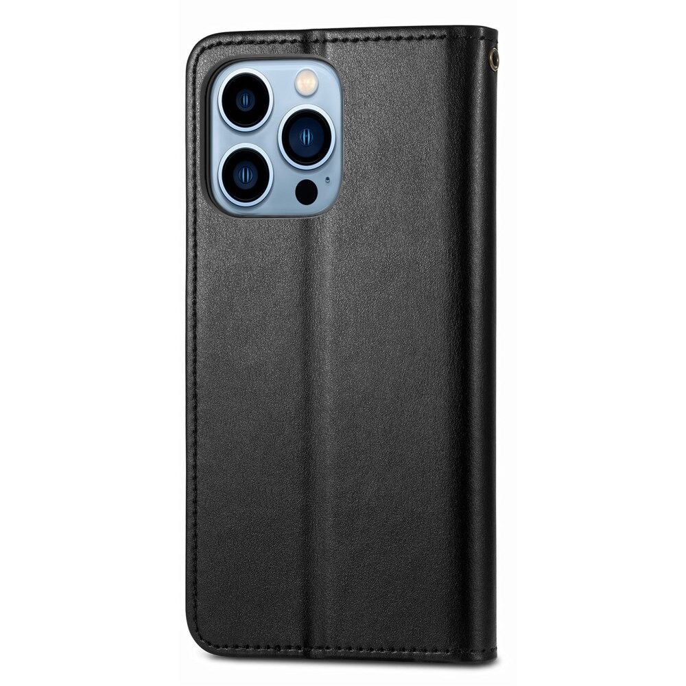 Effen Kleur Folio Flip Lederen Stand Bag Portemonnee Cover voor iPhone 13 Pro - Zwart