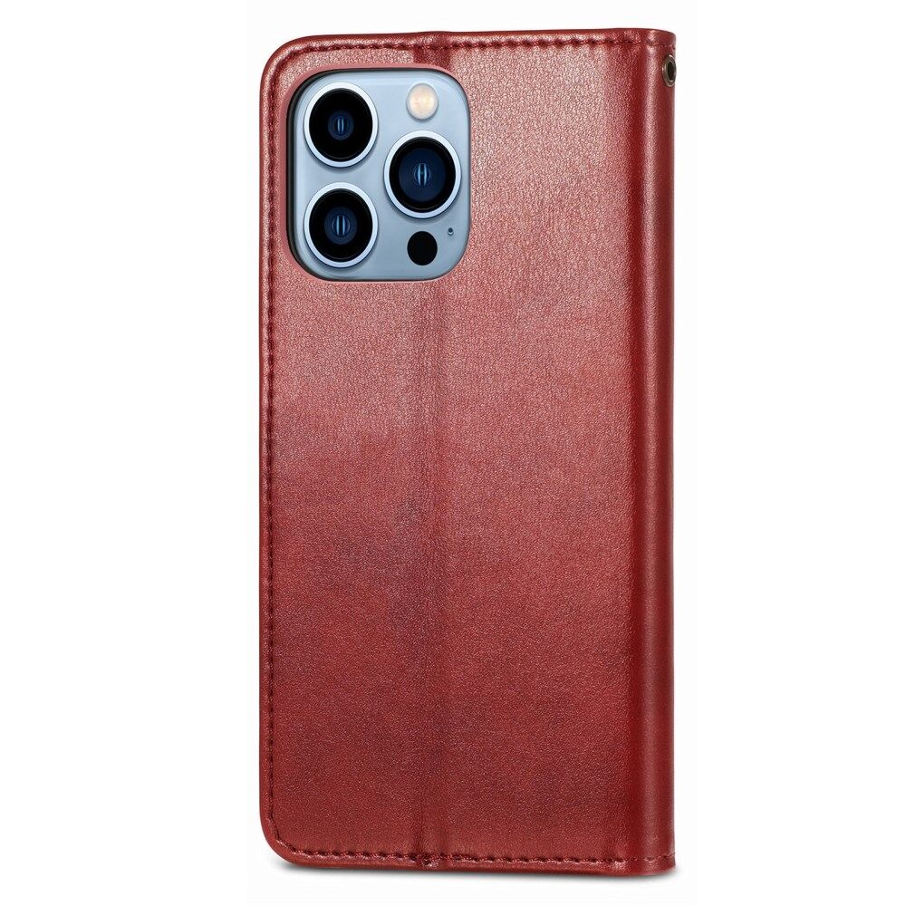 Effen kleur Folio Flip lederen telefoonstandaard Case Stand voor iPhone 13 Pro 6.1 inch - Rood