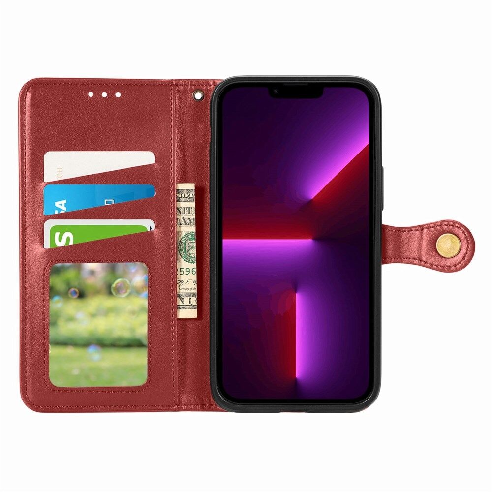 Effen Kleur Folio Flip Lederen Stand Bag Portemonnee Cover voor iPhone 13 Pro - Rood