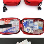 De set wordt geleverd in een praktische opbergtas, die uiteraard is gemarkeerd met een wit kruis en de tekst "First Aid", zodat deze gemakkelijk terug te vinden is wanneer dat nodig is.