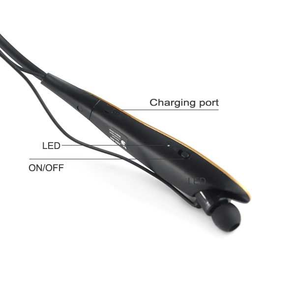 De oplaadbare batterij laadt via USB in 3 uur op voor 5-6 uur praten en muziek.