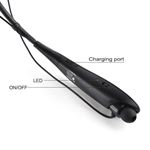 De oplaadbare batterij laadt via USB in 3 uur op voor 5-6 uur praten en muziek.