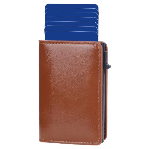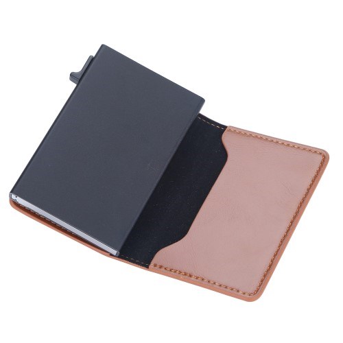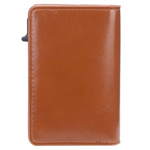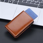 Elegant Lederen & Aluminium RFID-Beveiligde Kaarthouder met Popup - Bruin