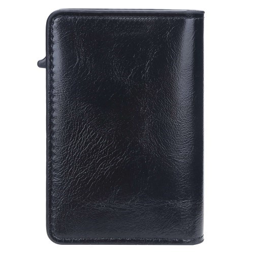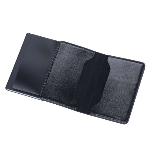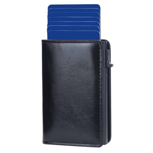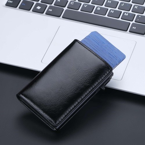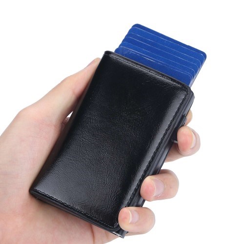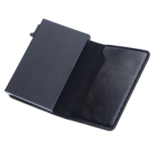 Elegant Lederen & Aluminium RFID-Beveiligde Kaarthouder met Popup - Zwart