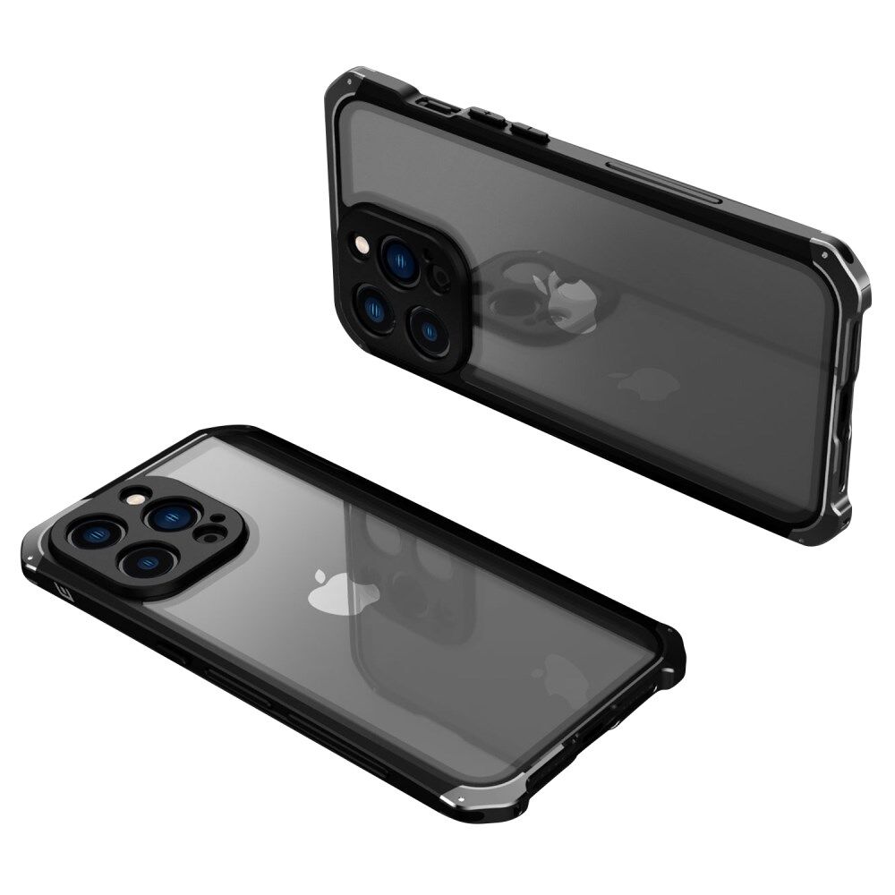 ELEMENT BOX voor iPhone 14 Pro valbescherming 3-delig ontwerp mobiele hoes metaal + gehard glas mobiele telefoon achterkant van de behuizing - zwart