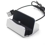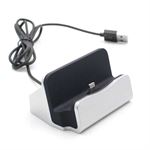Dockingstation dat gegevens op uw iPhone of iPod kan opladen en synchroniseren. Het ontwerp is uiterst stijlvol en elegant, en van hoge kwaliteit met stabiele prestaties. Met de geïntegreerde kabel heb je controle over de kabel en ziet je tafel er altijd opgeruimd uit. Tegelijkertijd heeft de houder een rubberen basis, waardoor hij antislip en stabiel is als je iPhone erin wordt geplaatst.