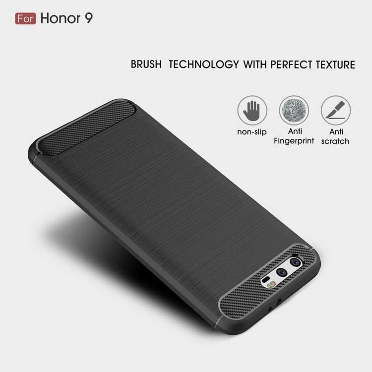 Fame Brushed Cover van zacht TPU en koolstofvezel voor Huawei Honor 9 - Zwart