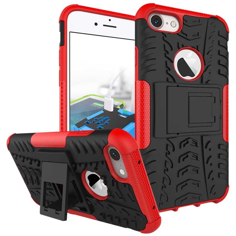 Jij krijgt Fashion Fit Cover in Silicone en Plastic met standfunctie voor iPhone 7/ iPhone 8 - Rood