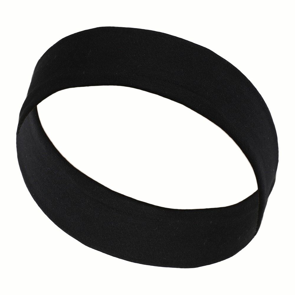 FD065 effen kleur vrouwen sport hoofdband vochtafvoerende elastische zweetband haarband - zwart