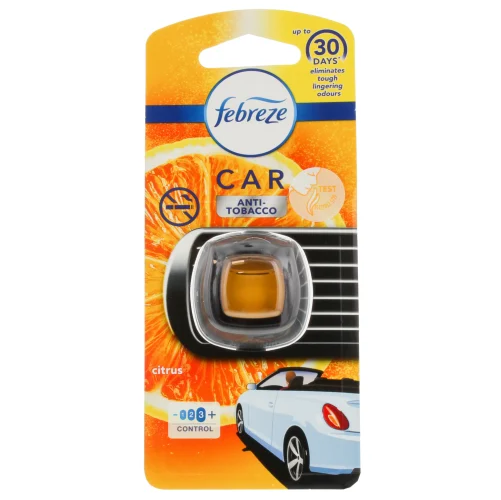 Vervangt de geur van tabak door een lichte en frisse citrusgeur. In tegenstelling tot de meeste autoverfrissers die de geur grotendeels maskeren, verwijdert de Febreze Auto Luchtverfrisser echt geurtjes en laat niets dan een lekkere frisse geur achter in je auto. .