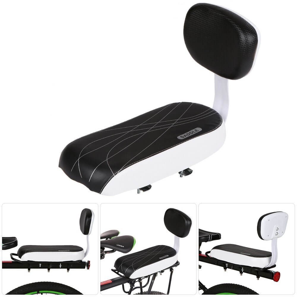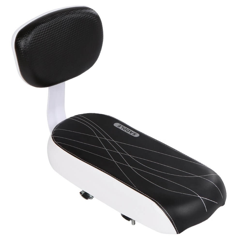 Fiets Achterzitje Fiets PU Leer Zacht Kussen Achterzitje Kinderzitje met Rugleuning - Zwart/Wit