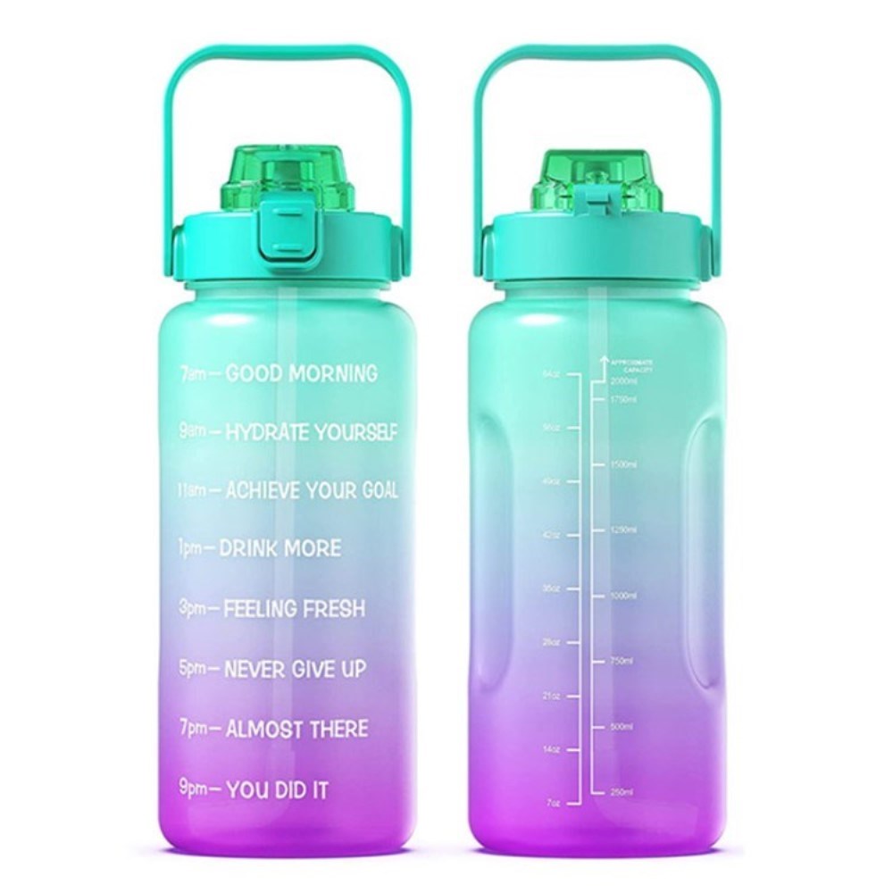Fitness Waterfles met Rietje - BPA GRATIS - 2000 ml - Roze/Groen