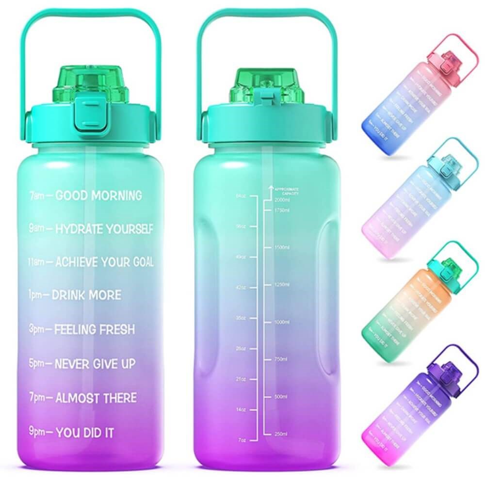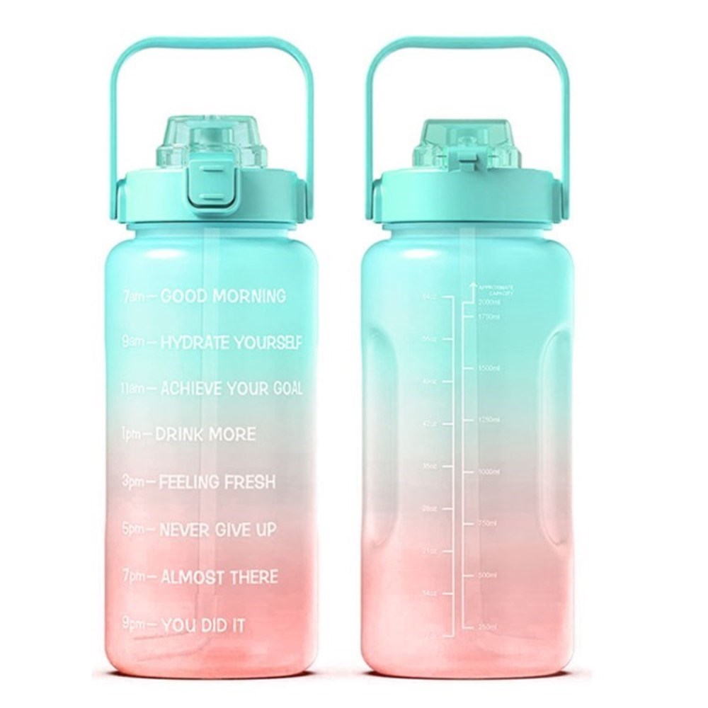 Fitness Waterfles met Rietje - Geen BPA - 2000 ml - Perzik/Groen