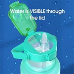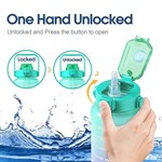 Dankzij het gepatenteerde openingsontwerp van het veerdeksel heb je slechts één hand nodig om het deksel te openen om water te drinken. Elk deksel is voorzien van een veiligheidsslot. Druk omhoog om de knop te vergrendelen en omlaag om te ontgrendelen. Dit slot voorkomt dat het deksel per ongeluk opengaat.