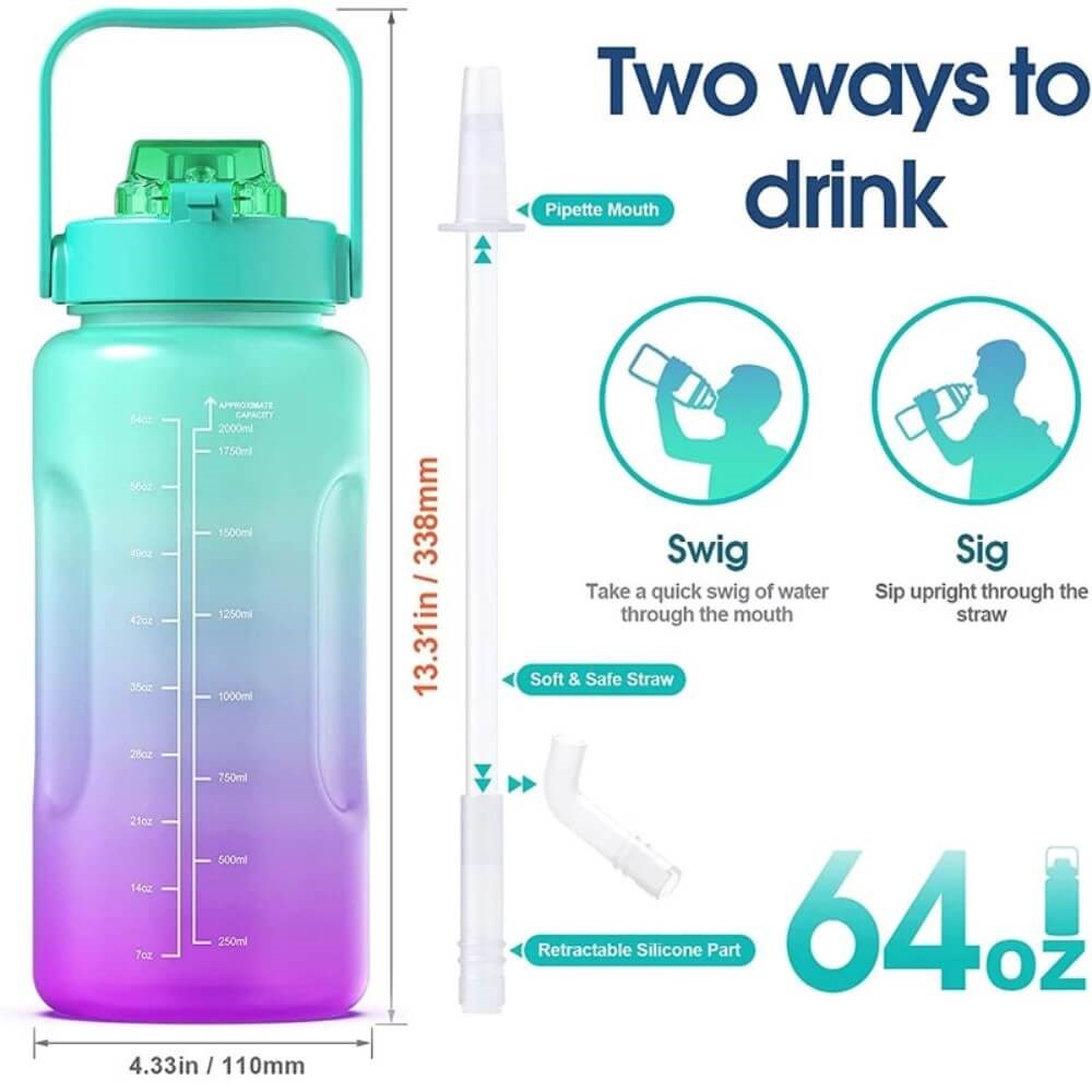 Ontworpen met een grote, stevige handgreep die duurzamer is dan een handgreep van touw. De ergonomische waterfles met handvat kan gemakkelijk worden vastgehouden, zelfs als hij vol water is, waardoor hij gemakkelijker overal mee naartoe te nemen is. Ideale draagbare waterfles voor sport, fitness, kamperen en reizen.