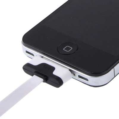 Platte afgewikkelde USB-kabel die wordt gebruikt om uw iPhone iPad op te laden en te synchroniseren.