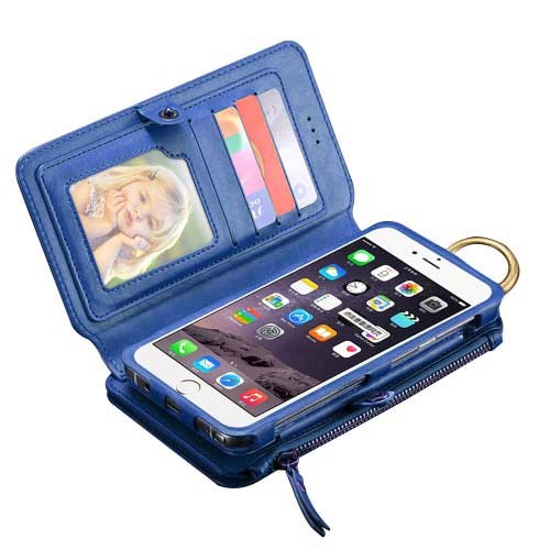 FloveMe Case met Cover en Riemhaak voor iPhone 6 / iPhone 6S / iPhone 7 / iPhone 8 / iPhone SE 2020/2022 - Blauw