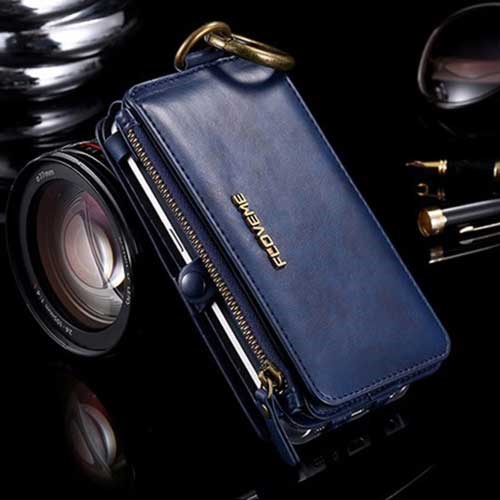 De magnetische hoes kan zonder portemonnee worden gebruikt en heeft een fotovak, kaarthouder en uitsparing voor camera, knoppen en poorten.