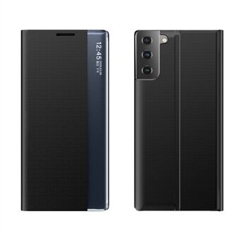 For Samsung Galaxy S21 4G/5G View Window Auto-absorbed Flip Leather Stand Protector Case Anti-Drop Protection - Black