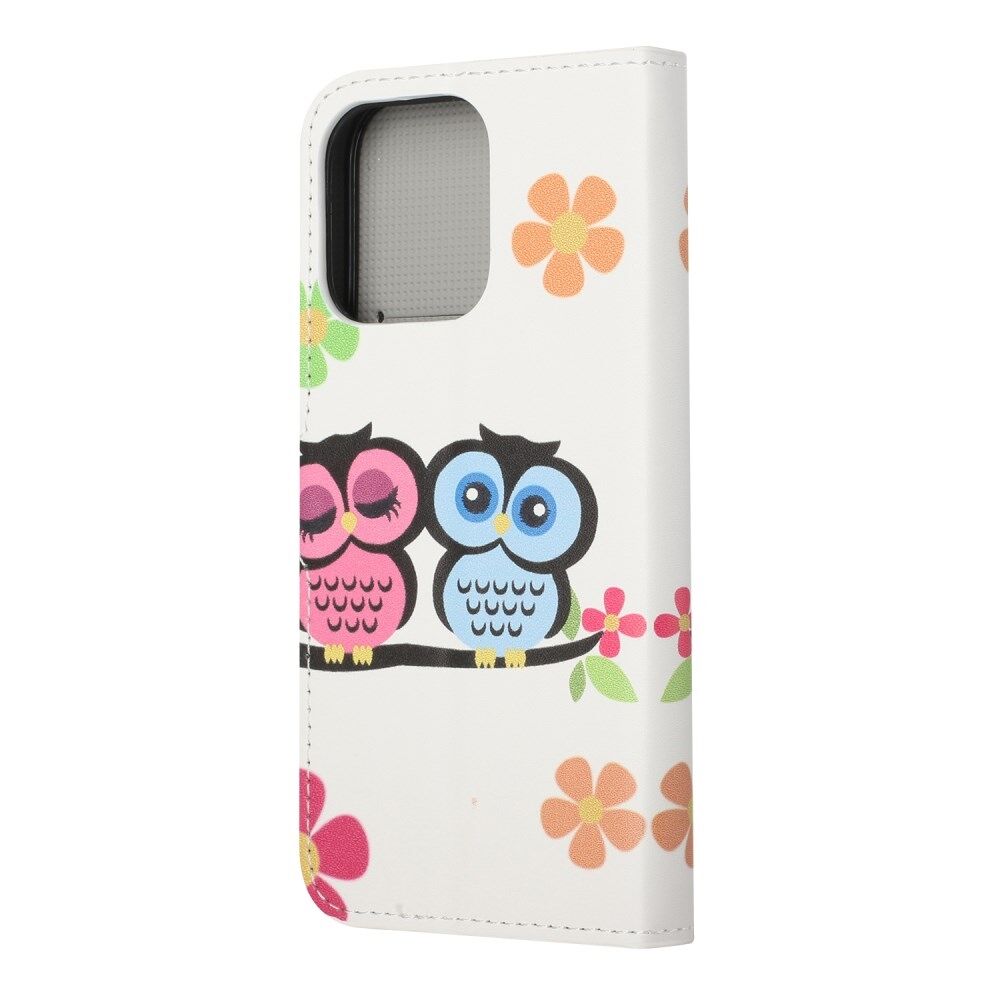 Full Body Beschermend Patroon Afdrukken PU-lederen portemonnee Magnetische sluiting Schokbestendig Stand Functie Flip Folio Cover Cover voor iPhone 13 - Paar uil