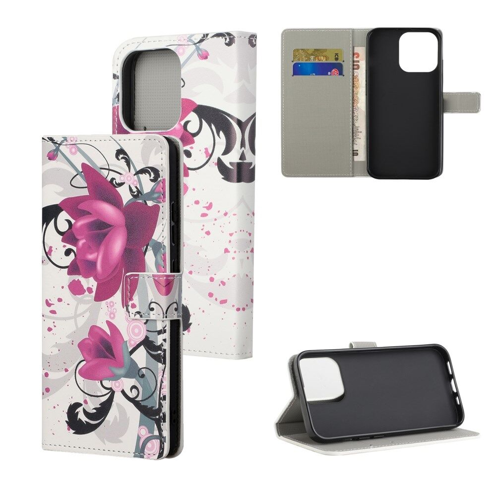 Full Body Beschermend Patroon Afdrukken PU lederen portemonnee Magnetische sluiting Schokbestendig Stand Functie Flip Folio Cover Cover voor iPhone 13 - Lotus