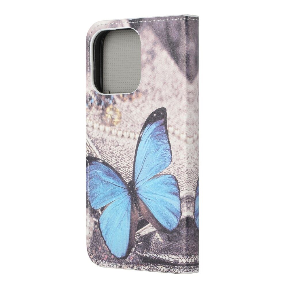 Full Body Beschermende Patroon Afdrukken PU Lederen Portemonnee Magnetische Sluiting Schokbestendige Stand Functie Flip Folio Cover Cover voor iPhone 13 6.1 inch - Blauwe Vlinder