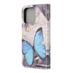 Full Body Beschermend Patroon Afdrukken PU lederen portemonnee Magnetische sluiting Schokbestendig Stand Functie Flip Folio Cover Cover voor iPhone 13 - Blauwe vlinder