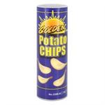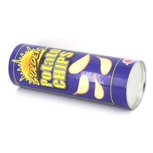 Ziet eruit en voelt aan als een echt blikje chips, verzegeld in krimpfolie, maar als je het blikje opent, komt er een slang uitvliegen.
