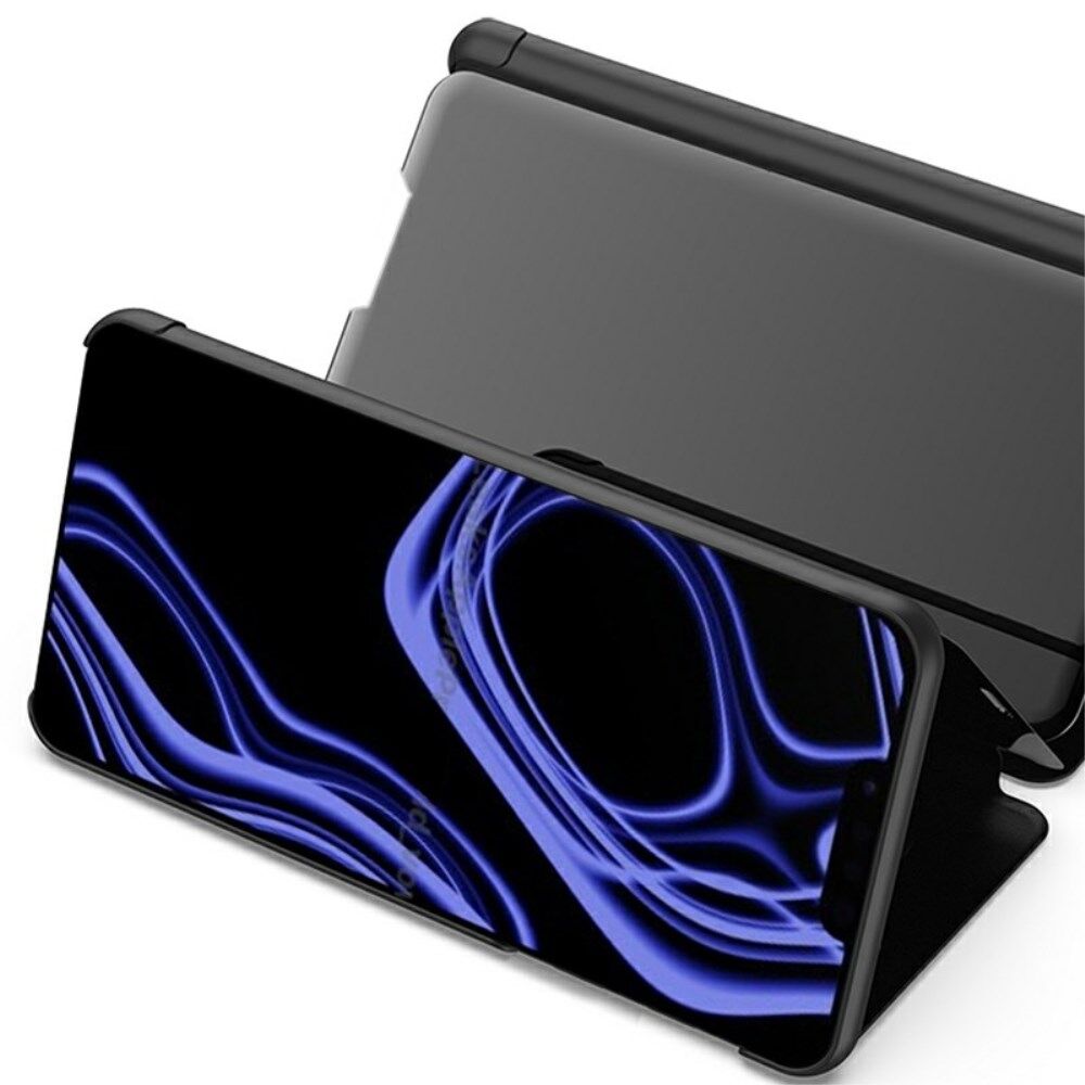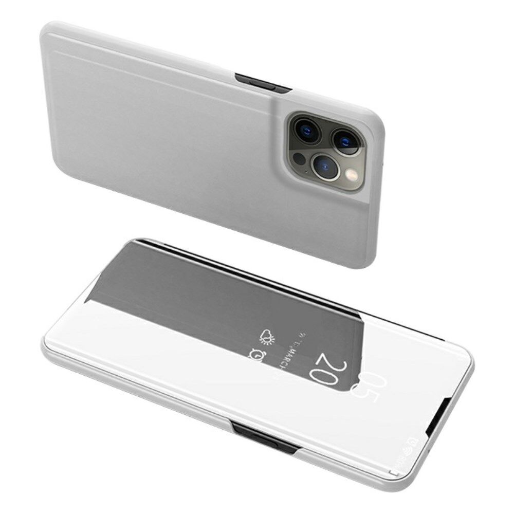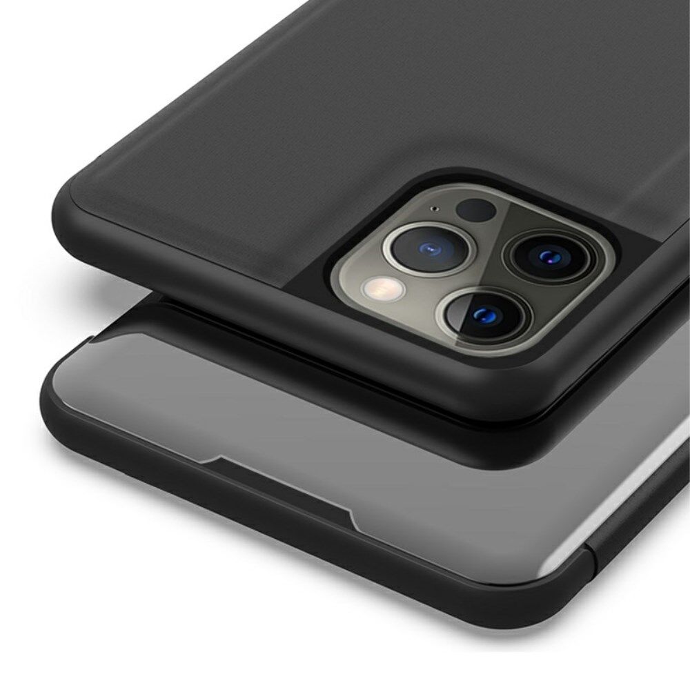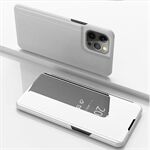 Galvaniseren Spiegel Oppervlak Lederen Telefoon Case Stand Shell met Venster voor iPhone 13 Pro - Zilver