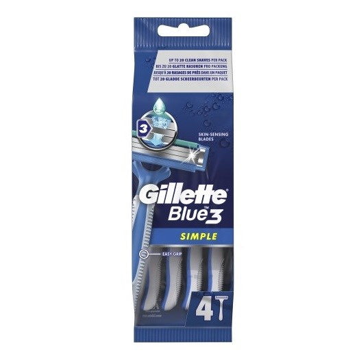 Gillette Blue3 Eenvoudige Wegwerpschrapers - 4 st. Gillette Blue3 wegwerpschrapers geven je tot vijf gladde scheerbeurten en 100% betere spoeling in vergelijking met Blue2.