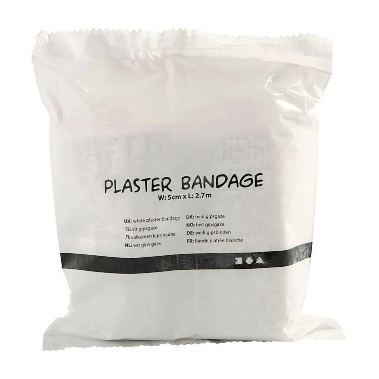 Verband/gaas geïmpregneerd met gips - enkele seconden in water dompelen om het flexibel (plakkerig) en werkbaar te maken. Gipsgaas kan in kleinere stukjes worden gesneden of direct van de rol worden gebruikt - voor plastic, glas, papier-maché, kippengaas, enz. - let op: gebruik een laagje vaseline voordat u het rechtstreeks op de huid aanbrengt. Set van 2 rollen.