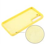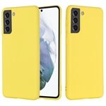 Goed beschermde vloeibare siliconen zachte telefoonhoes met draagriem voor Samsung Galaxy S22 5G - Geel