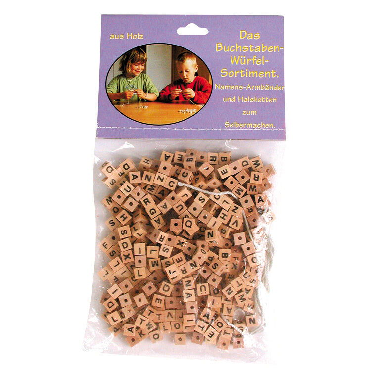Zakje met letterkralen en touwtje om bijvoorbeeld je eigen naam te kunnen rijgen. Inhoud: 300 kralen en touw met een lengte van 100 cm.